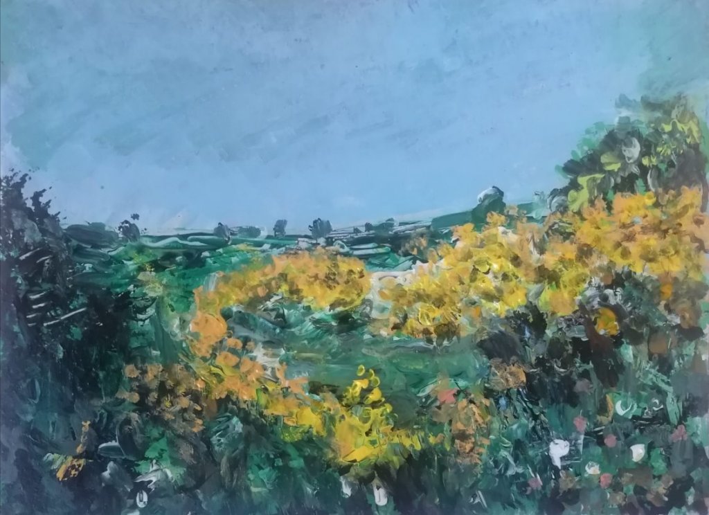 Genêts dans les Monédières, Acrylique 18x24 cm
