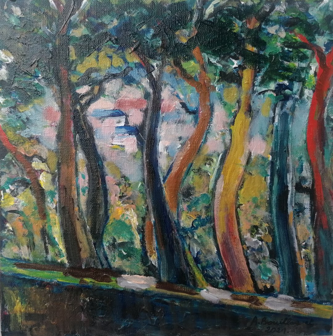 Le Busson derrière les arbres 30x30 cm